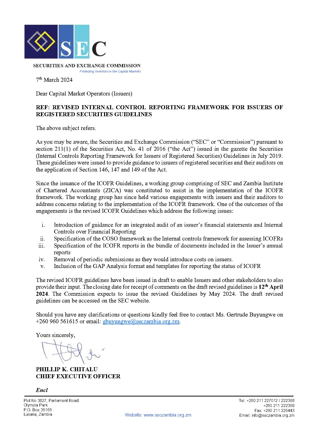 March 30th, 2023 – The Securities and Exchange Commission of Zambia (SEC) is pleased to announce its admission to the
